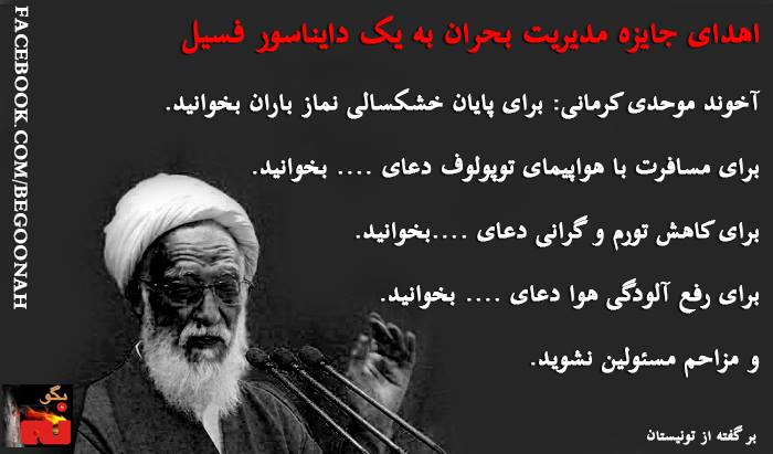 گالری فیلم و تصویر اهدای جایزه مدیریت بحران به یک دایناسور فسیل Date: اکتبر 17, 2014Author: begoonah 0 دیدگاه اشتراکگذاری این:بیشتر برای اشتراکگذاشتن فیسبوک خود کلیک کنید (در پنجرۀ تازه باز میشود) فیسبوک اشتراک گذاشتن توسط اس ام اس (در پنجرۀ تازه باز میشود) X برای چاپ کردن کلیک کنید (در پنجرۀ تازه باز میشود) چاپ برای اشتراکگذاری روی Telegram کلیک کنید (در پنجرۀ تازه باز میشود) تلگرام برای اشتراکگذاری روی WhatsApp کلیک کنید (در پنجرۀ تازه باز میشود) واتساپ