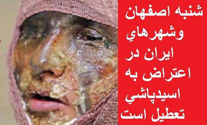 Foto: فراخوان مردم اصفهان : شنبه دانشگاه ، مدارس ،ادارات و بازار اصفهان تعطیل است در پی اسید پاشی های اخیر در چند روز گذشته و جراحت ها و فاجعه های بجای مانده و همچنین خودجوشی مردمی در خیابان نیکبخت مقابل دادگستری تصمیم گرفته شد شنبه مورخ 3 آبان کلیه مقاطع تحصیلی از دبستان تا دانشگاه های استان اصفهان و ساير استانها و همچنين ادارات و بازار اعتصاب کرده و تعطیل گردد. نگران غیبت های غیرموجه و حذف واحد نباشید زیرا معلمان ، دبیران و استادان نیز خود بچه و ناموس در این استان دارند و نگران امنیت انان هستند… یکبار هم ما غیرت نشان دهیم و بخواهیم. هرچقدر سکوت کردیم در مقابل خشکی زاینده رود کافیست در برابر جان و امنیت ناموسمان دیگر سکوت نمیکنیم! لطفا از هر کجای ایران هستید این خبر را کپی و اطلاع رسانی کنید…
