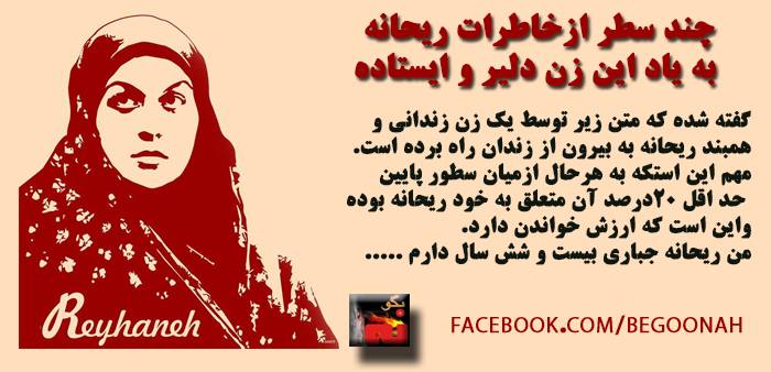 گفته شده كه متن زير توسط يك زن زنداني و همبند ريحانه به بيرون از زندان راه برده است. مهم اين استكه به هرحال ازميان سطور پايين حد اقل 20% آن متعلق به خود ريحانه بوده واين است كه ارزش خواندن دارد.