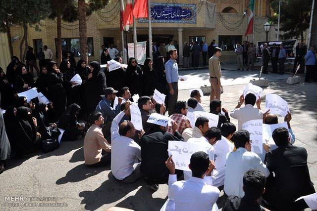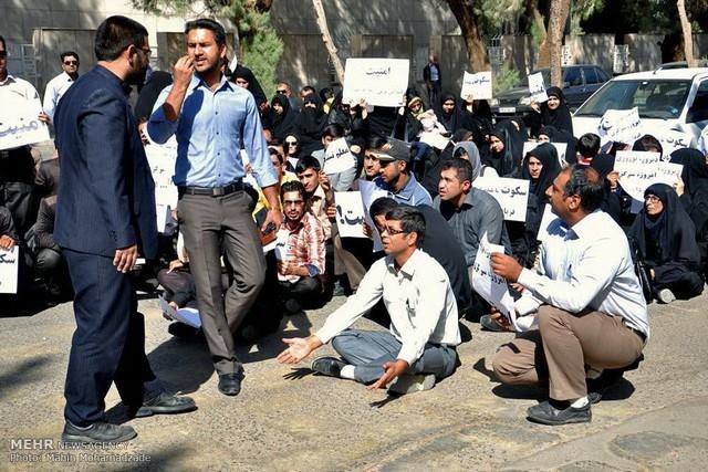 این تجمع که با پلاکاردهایی همچون «امنیت، معلم تسلیت»، همراه بود، در اعتراض به دو ترور در سال جاری که منجر به مرگ دو معلم شده، انجام می شد.