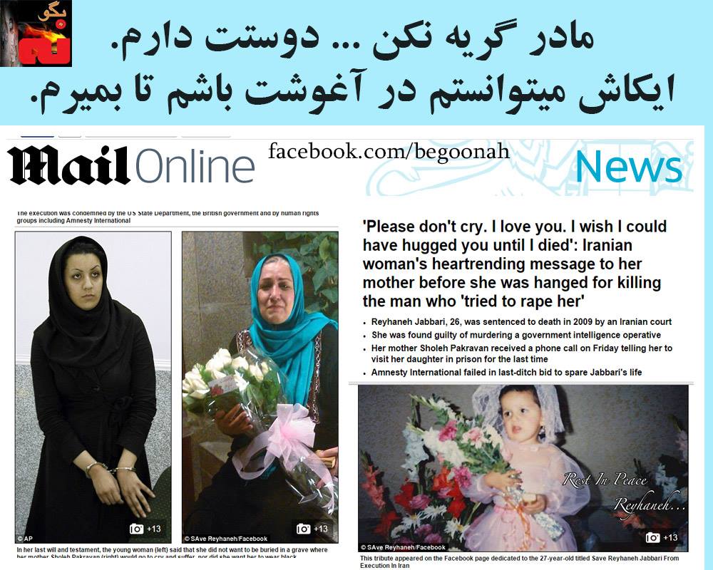 این سخنان پیام به یک مادر از دل دختریست که بدلیل دفاع در برابر مردی متجاوز بدار آویخته شد. او در وصیت کوتاهی از مادرش خواسته است که برای او عزاداری نکند. وی برغم دادرسی ناعادلانه و ناقص و درخواستهای بین المللی و کمپینهای بسیاری که بدفاع از او تحت شرایط سرکوب شدید برگزار شده بود اعدام شد.