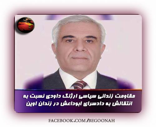 بنابه گزارشات رسیده دژخیمان ابوداعش قصد انتقال زندانی سیاسی ارژنگ داودی به محلی در زندان اوین موسوم به دادسرای امنیت را داشتند که با مقاومت شدید این زندانی سیاسی مواجه و فعلا انتقال وی متوقف گردید.
