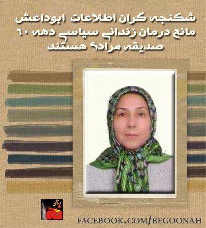زندانی سیاسی دهه ۶۰ صدیقه مرادی ۵۴ ساله است .آخرین بار در اردیبهشت ۱۳۹۰ با یورش مامورین وزارت اطلاعات دستگیر و به بند ۲۰۹ زندان اوین شکنجه گاه وزارت اطلاعات منتقل گردید و به مدت ۷ ماه در سلولهای انفرادی تحت شکنجه های جسمی و روحی بازجویان وزارت اطلاعات قرار داشت.فردی با نام مستعار علوی سر بازجو وزارت اطلاعات و از شکنجه گران بند ۲۰۹ زندان اوین با پرونده سازی واهی ، وی را در یکی از شعب دادگاه انقلاب محاکمه و به ۱۰ سال زندان محکوم نمود.زندانی سیاسی صدیقه مرادی ۲ بار در دهه ۶۰ به دلیل عقایدش زندانی شده بود بار اول ازسال ۱۳۶۰ الی ۱۳۶۱ بار دوم از سالهای ۶۱ الی ۶۴ بود.
