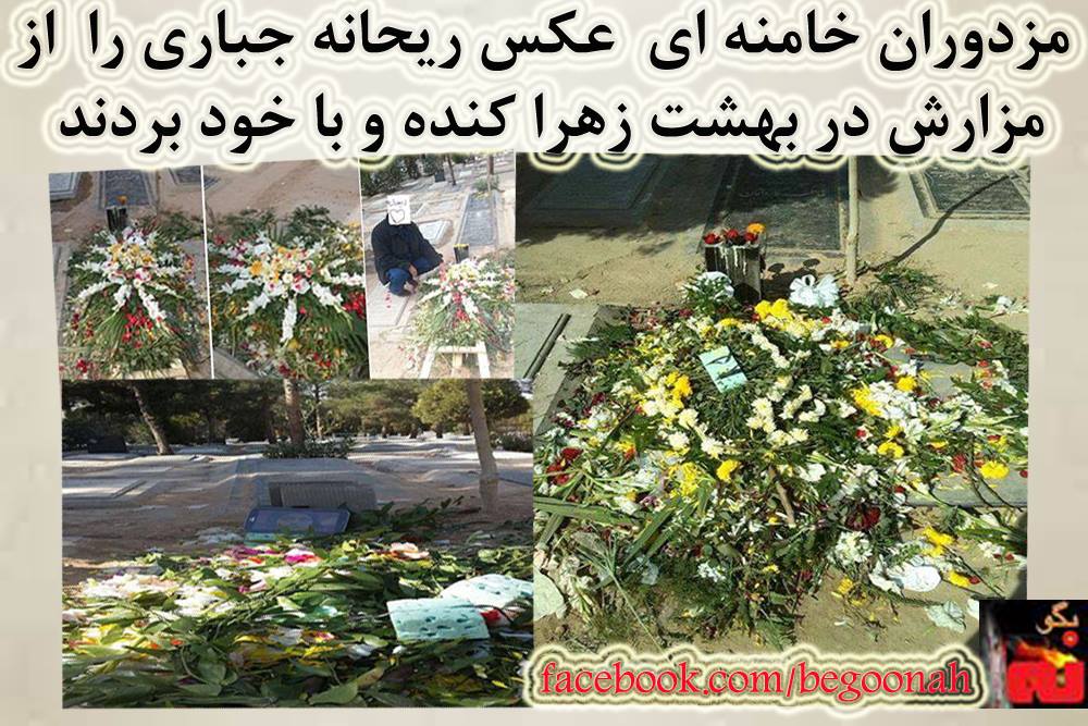 بنابه خبر دريافتي روز پنجشنبه 8آبان كه با وجود فضای شدید امنیتی، جمعی از مردم و خانواده و بستگان ریحانه جباری بر سر مزار وی در بهشت زهرا تجمع کرده و یاد ریحانه را گرامی داشتند،مزدوران خامنه اي عکس ریحانه جباری را که توسط خانواده او روی مزار نصب شده بود، کنده و با خود برده بودند.