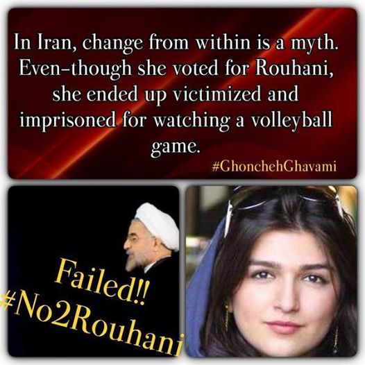 گالری فیلم و تصویر غنچه قوامی دختری که به امید رسیدن به اندکی آزادی بیشتر به آخوند شیاد روحانی رای بنفش داد و هم اکنون به اتهام شرکت در تماشای یک مسابقه ورزشی در زندان محبوس است Date: نوامبر 3, 2014Author: begoonah 0 دیدگاه #بگونه #زنان #ورزش #روحانی اشتراکگذاری این:بیشتر برای اشتراکگذاشتن فیسبوک خود کلیک کنید (در پنجرۀ تازه باز میشود) فیسبوک اشتراک گذاشتن توسط اس ام اس (در پنجرۀ تازه باز میشود) X برای چاپ کردن کلیک کنید (در پنجرۀ تازه باز میشود) چاپ برای اشتراکگذاری روی Telegram کلیک کنید (در پنجرۀ تازه باز میشود) تلگرام برای اشتراکگذاری روی WhatsApp کلیک کنید (در پنجرۀ تازه باز میشود) واتساپ