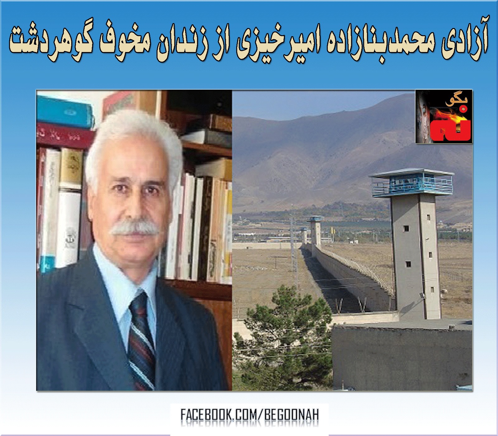 محمد بنازاده امیرخیزی زندانی سیاسی مسن در سالن ۱۲ زندان گوهردشت، ساعاتی پیش از زندان آزاد شد.