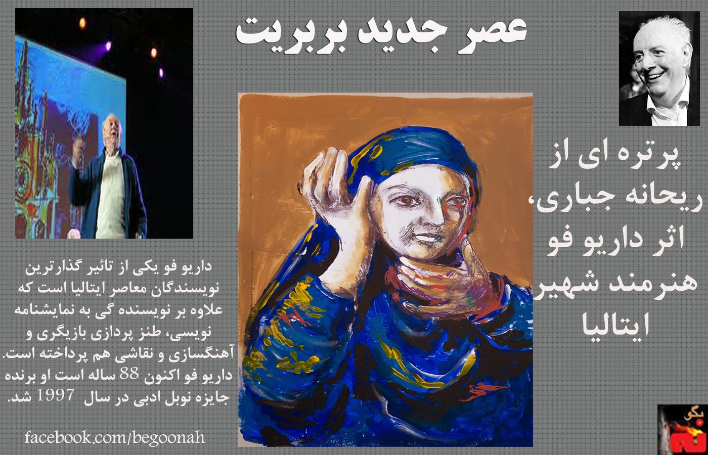 #داريوفو #هنر #هنرمند #ايتاليا#نقاشي #نمايشنامه #طنز#پرتره#ريحانه #اعدام #عصر بربريت #فيسبوك #بادبان #بگونه #وبلاگ