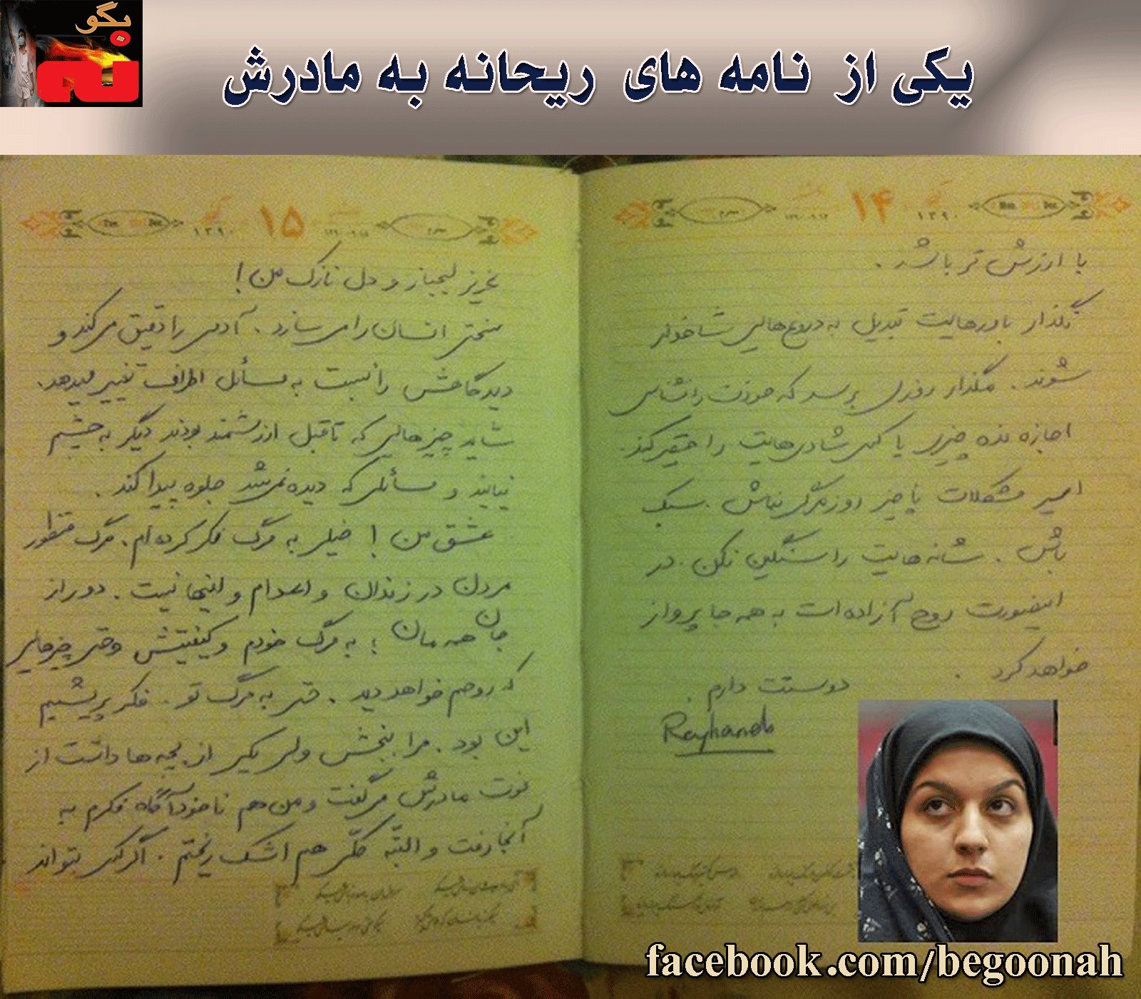 یکی ازنامه های ریحانه به مادرش