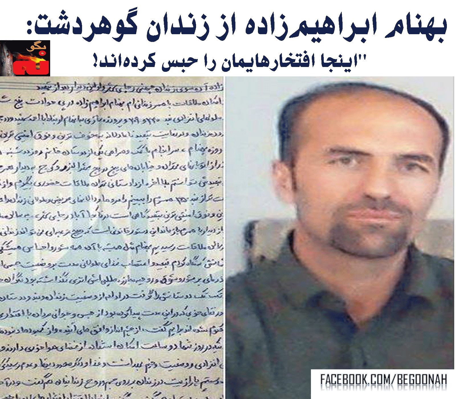 بنابه گزارش کمپین دفاع از زندانیان سیاسی و مدنی، زبیده حاجیزاده همسر بهنام ابراهیمزاده فعال کارگری و زندانی سیاسی گوهردشت، پس از ماهها ممنوعالملاقات بودن از سوی دستگاه قضایی و امنیتی، دوشنبه 28 آبانماه موفق به دیدار همسرش شد و در نامهای این دیدار را به رشته تحریر درآورده است.