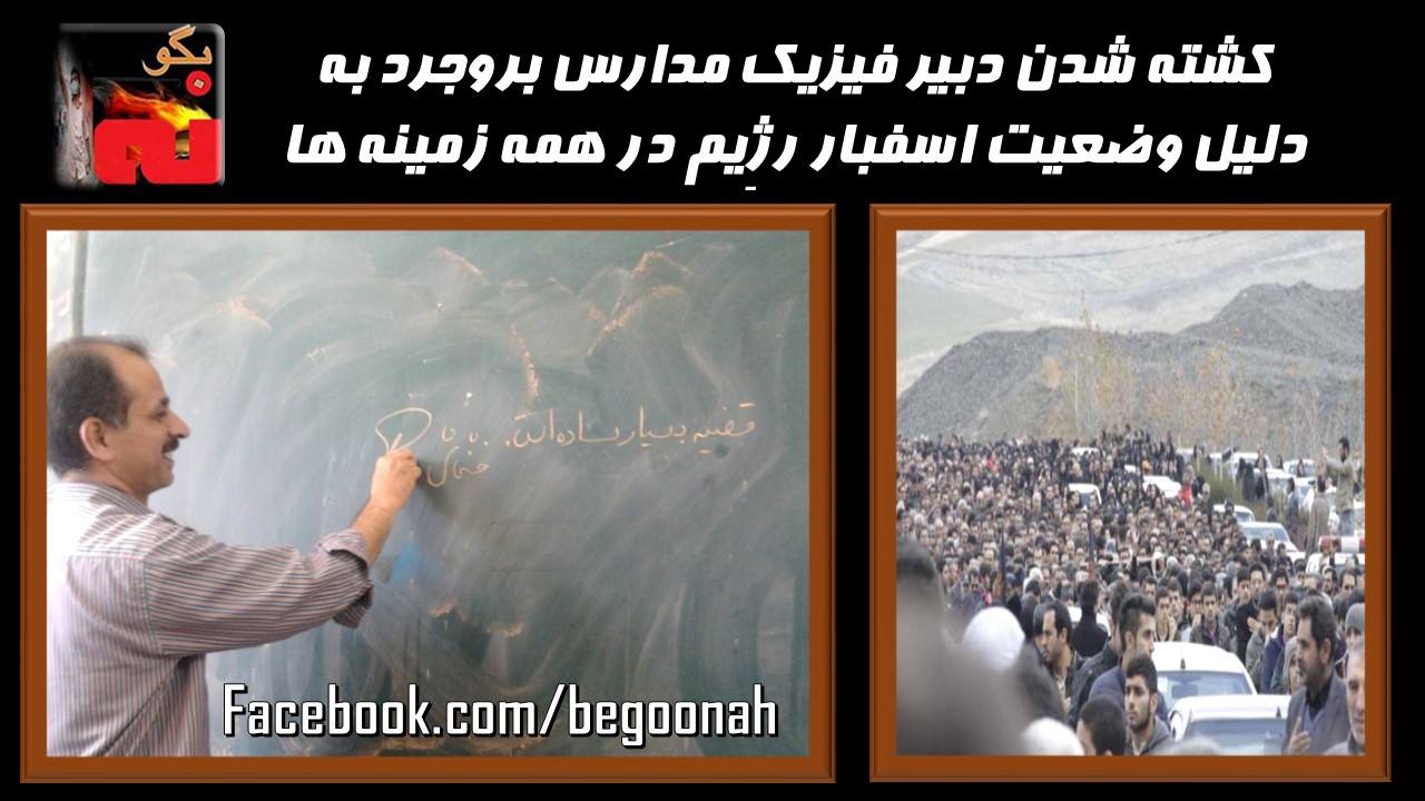 #بگونه #دبیر #خشخاشی# فیزیک #بروجرد #رژیم#کشته شدن #دانش آموز# اعتراض # مردم #خشم#مدارس