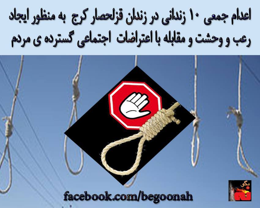 رژیم جنایتکار » ابوداعش » روز سهشنبه ۴ آذر ۱۰زندانی محکوم به اعدام را بهطور جمعی در زندان قزلحصار کرج بدار آویخت.