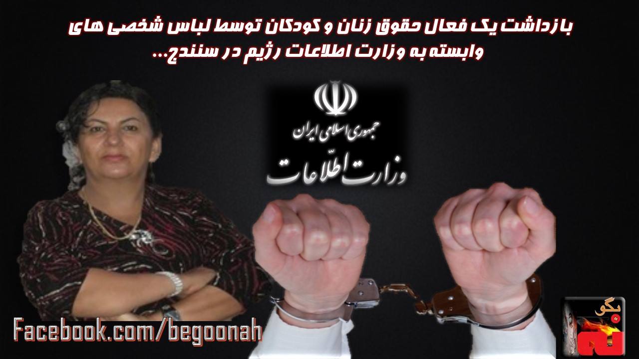 به گزارش فعالین حقوق بشر درایران، نیروهای لباس شخصی رژیم ، یک فعال حقوق زنان به نام منیژه صادقی را درسنندج بازداشت کردند.