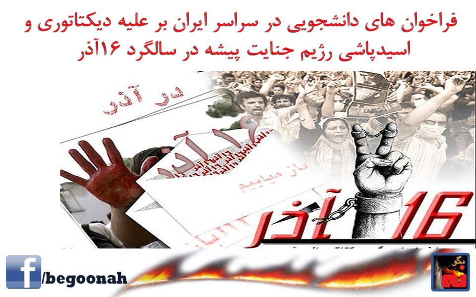 فراخوان های دانشجویی در سراسر ایران بر علیه دیکتاتوری و اسیدپاشی رژیم جنایت پیشه در سالگرد ۱۶آذر
