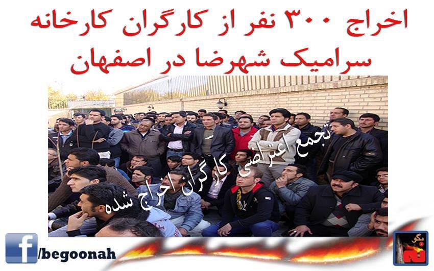 کارگزاران ورشکسته حکومتی در کارخانه سرامیک شهرضا تا پایان ماه گذشته۳۰۰ کارگر این واحد تولیدی را اخراج کرده اند.