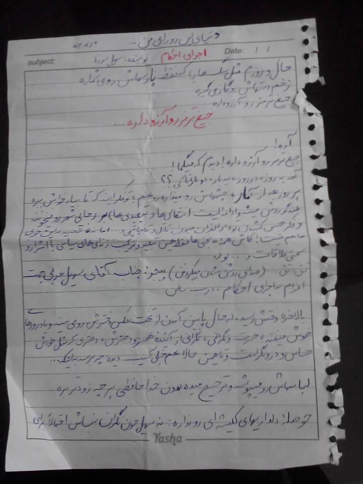 حوصله دلداریهای کلیشه ای رو نداره ،نه سهیل جون نگران نباش احتمالا برای شلاقه – آره ایشالله که میری میگن اعدامت شکسته شلاقت رو میزنند فقط میمونه یه سال تبلیغ علیه نظامت اجرای احکام که فقط برای اعدام نیست !