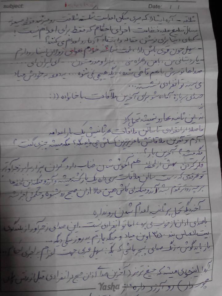 تو هر قدمی که به سمت سالن ملاقات برمی داره یک بار کشته میشه و آرزو میکنه این لحظه ها هر چه زودتر تموم بشه ،آرزو میکنه ای کاش همین حالا اذان صبح رو بشنوه و حکمش اجرا شه