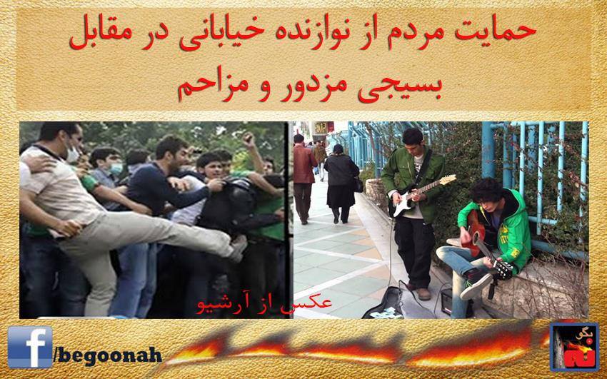 حمایت مردم از نوازنده خیابانی در مقابل بسیجی مزدور و مزاحم