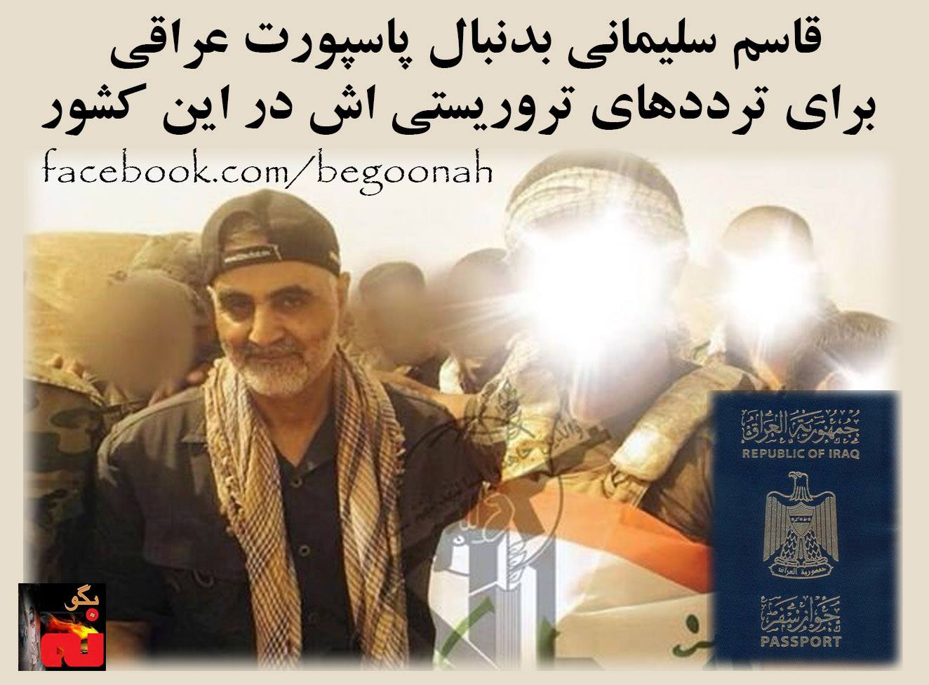 سرلشگر پاسدار قاسم سليماني كه فرماندهي شبه نظاميان وابسته به سپاه قدس در عراق را بر عهده دارد و اخيرا هيات ناظر بر تحريمها در سازمان ملل حضور وي در عراق را نقض تحريمهاي شوراي امنيت گزارش كرد، براي پيش برد اهداف خامنه اي و باند مالكي بدنبال يك پاسپورت عراقي است تا بتواند اين تحريمها را دور بزند و آزادانه در عراق تردد داشته باشد.