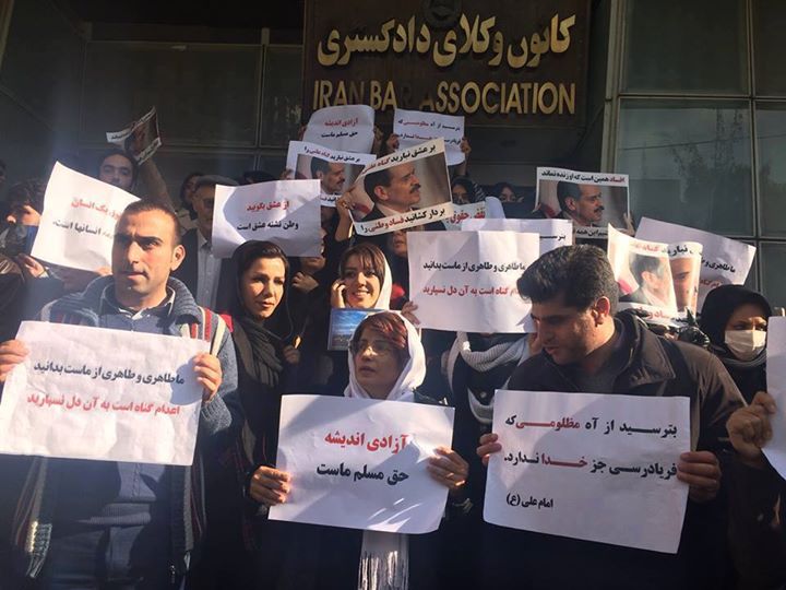 امروز، 24 آذر 1393، جمعیت قابل توجهی از هموطنان آزاده ، با تجمع در مقابل زندان اوین و سپس، پیوستن به تحصن خانم نسرین ستوده در مقابل کانون وکلا، خواهان «آزادی اندیشه» و «آزادی استاد محمدعلی طاهری» شدند و نشان دادند که در مقابل ظلم به این زندانی بی گناه عقیدتی، بی تفاوت نخواهند بود.