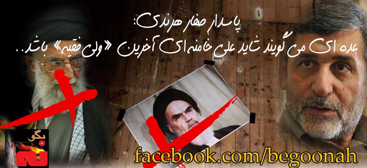 پاسدار صفار هرندي: عده اي مي گويند شايد علي خامنه اي آخرين «ولي فقيه» باشد. ( همينطور است! و اكبر شاه هم آرزويش را با به گور رفتن نظام و ولي فقيه نظام به گور خواهد برد)