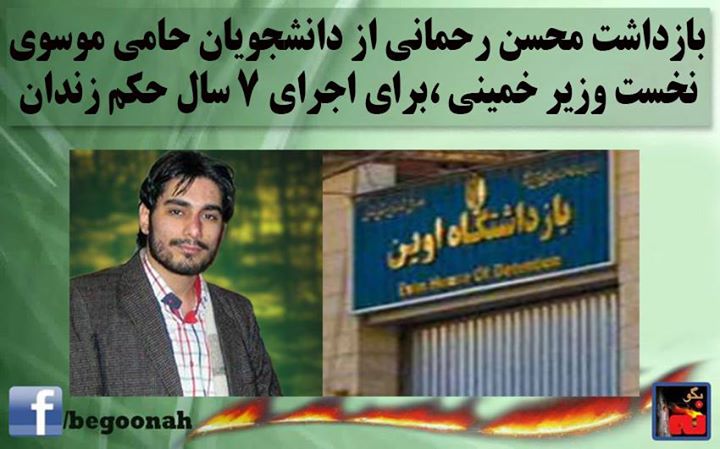 محسن رحمانی دانشجوی رشته آی تی ، که به خاطر بالا بردن عکس میرحسین موسوی نخست وزير خميني در میتینگ انتخاباتی راسپوتين نظام شيخ حسن روحاني به ۷ سال زندان محکوم شده بود، روز گذشته در منزل خود توسط نیروهای دادستانی بازداشت و به زندان اوین منتقل شد.