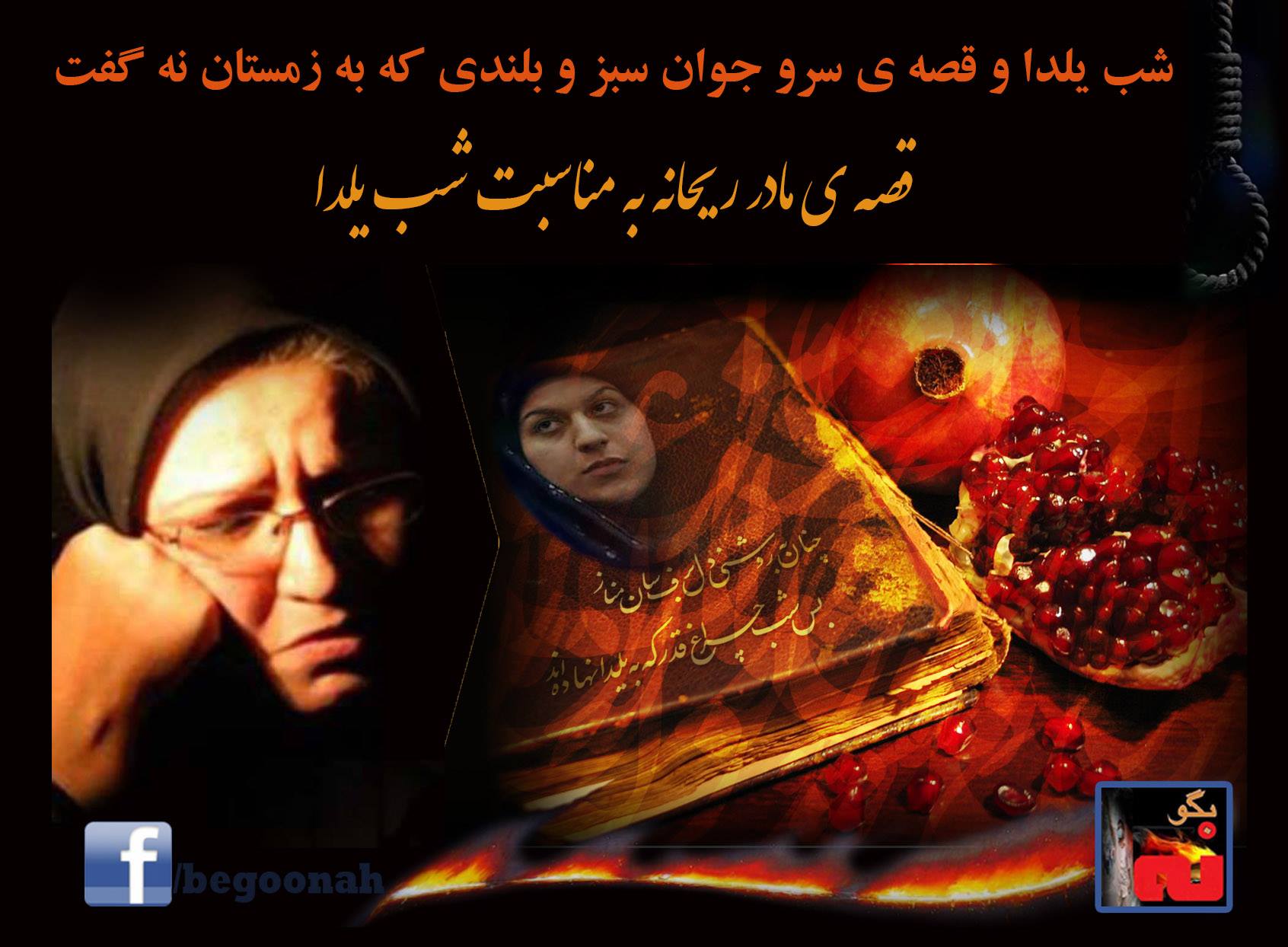 تمام سعی ام را میکنم که چند روز آینده ، قصه ای بنویسم . قصه ای برای نوه هایی که در آینده خواهم داشت . اگر شب یلدا به خانه ام آمدند و با خود شوق کودکانه آوردند ، نمیخواهم دستم خالی باشد . باید برایشان قصه بگویم . قصه خاله جوانمرگشان که مثل سرو آزاده ، ایستاد و به جلادش یک نه تاریخی گفت . نه ریحان چنان سنگین بود که جلاد و زنان همدستش با گریه از زیر بار نگاه معصومانه اش فرار کردند . نه پاره تنم چنان قاطع بود و برنده که سایه های پنهان ، پشت سر هم بیانیه دادند و خود را مبرا دانستند از همدستی در یک جنایت . چنان اثیری بود که هزار همایش و سمینار نمیتواند رنگ و لعاب بدهد به حکم شنیعی که یک شعبده باز صادر کرد و جمعی را درگیر ننگ اجرای حکم قتل فرزندم . هرگز اجازه نخواهم داد که فرزندان و نوادگانم از یاد ببرند دختری را که تسلیم مرتضای هرزه نشد . شنل قرمزی نوزده ساله ی من تصور میکرد پایان قصه ، گرگ به سزای عملش میرسد . ولی با مرگش ، ثابت کرد که در این زمان باید قصه ها را زیر و رو کرد و طرح نو در انداخت . چرا که کودکان امروز ما از ورای قصه های کودکانه ، زندگی آینده شان را ترسیم میکنند . شنگول و منگول هم باید بدانند اگر گرگ خودش را به شکل دکتر متدین دراورد ، ذات درنده اش را تغییر نمیدهد و گاه شاخ مامان بزی قادر به شکافتن شکم آقا گرگه نیست تا آزاد شوند و آخر قصه زیبا تمام شود . چند روز آینده را یکسره در اختیار آیندگان قرار میدهم . قصه هایی برای فردا . برای یلدای طولانی که مادرانی چون من اسیر آن هستند . برای جشن هایی که برگزار خواهند شد . برای زمستان و بهار .