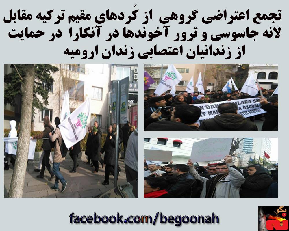 تجمع اعتراضی گروهي از کُردهای مقيم تركيه مقابل لانه جاسوسي و ترور آخوندها در آنکارا در حمایت از زندانيان اعتصابي زندان ارومیه