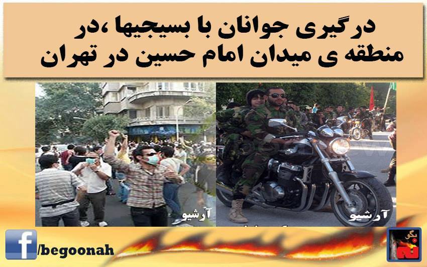 درگیری جوانان با بسیجیها ،در منطقه ی میدان امام حسین در تهران