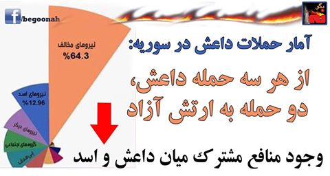 آمار منتشر شده توسط مرکز «شورش و تروریسم» نشان میدهد که در سال جاری، از هر سه حمله داعش، دو حمله علیه نیروهای مخالف دولت اسد بود. این خود نشان از وجود منافع مشترک میان نظام اسد و داعش در از میان بردن گروههای اپوزیسیون دارد.