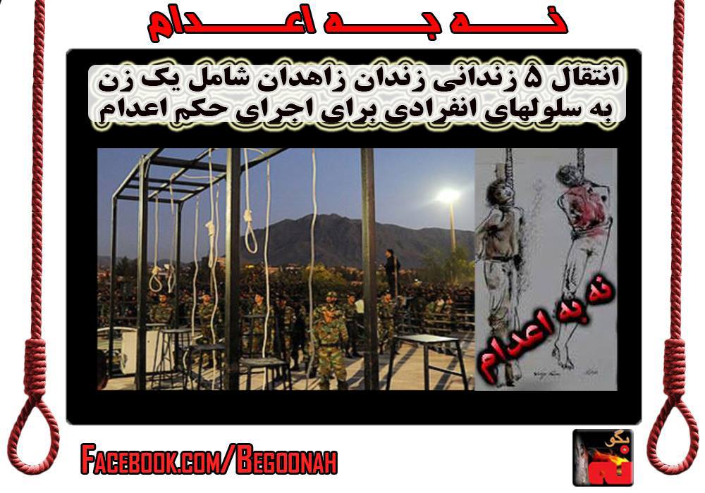 انتقال ۵ زندانی زندان زاهدان شامل یک زن به سلولهاي انفرادي برای اجرای حکم اعدام