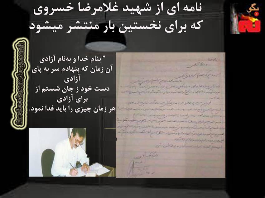 #خسروي #غلامرضا #شهيد #نامه #منتشر#آزادي#فدا#بگونه