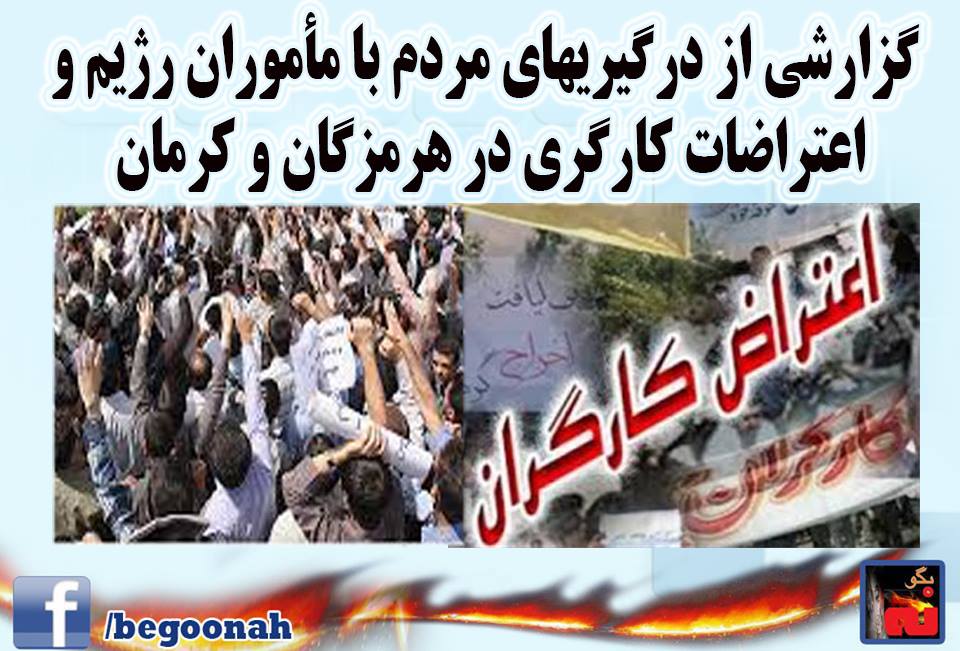 گزارشی از درگیریهای مردم با مأموران رژیم و اعتراضات کارگری در هرمزگان و کرمان