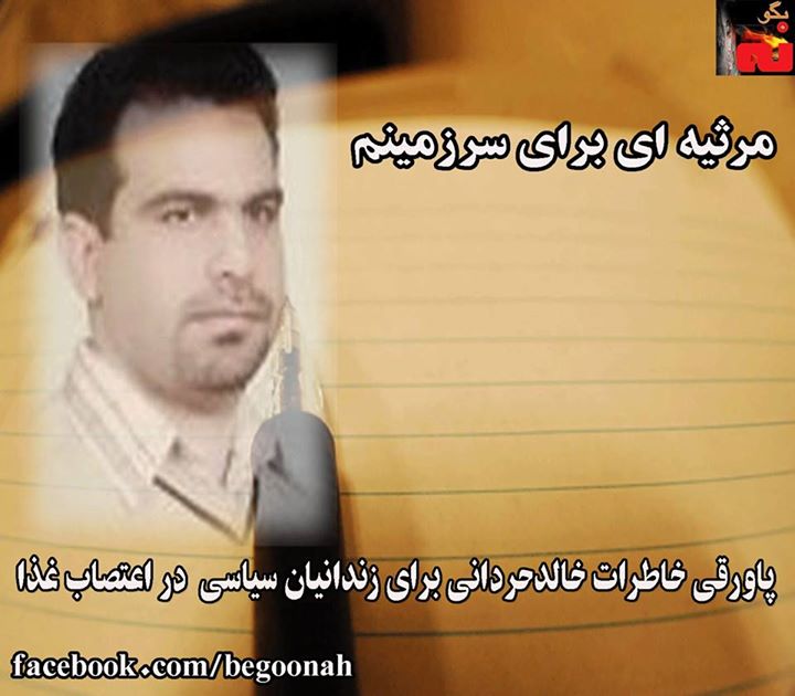و سرمای یلدا را؛ زیرا درونش؛ فریاد های تو پنهان است؛ که مسیح را؛ به صبح رستاخیز اندیشه های بشر؛ فرا می خواند؛ من تصویر مصلوب مظلومیت تو هستم؛ فریاد تو سخن تو ؛ و آرزوهای تو؛ ای هموطن کرد؛ ای عرب؛ ای بلوچ؛ و ای دستها ی در زنجیر ملتم؛ که اینک؛ با زبان روزه ات؛ و؛ با سکوت آسمانی خود در زندان؛ کاخ استبداد پوشالی دیکتاتور را؛ با تمام سربازان مقویی اش؛ به لرزه انداختی؛ اینک چون سرو؛ استوار باش؛ ای صلیب بر افراشته بر قامت تاریخ وطن؛ ای سیمای جاوید؛ ای رفیق؛ زیرا بامداد؛ قلب جادویی شاپرک ها سرزمینم؛ با تو خواهد تپید؛ پس؛ تا صبح بیدار باش؛ زیرا. ..