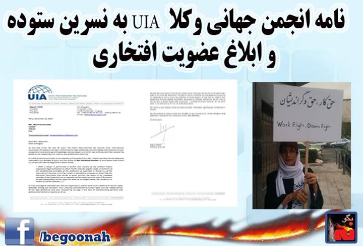 متن نامه ی انجمن جهانی وکلا UIA به نسرین ستوده: