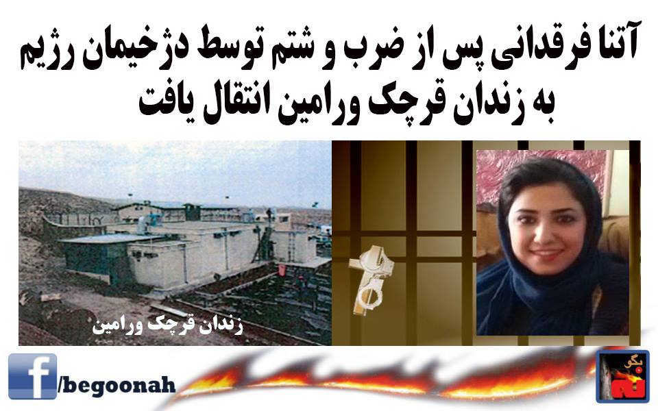 بنا به خبر دریافتی ،آتنا فرقدانی، نقاش و فعال مدنی که پس از آزادی از زندان، نسبت به هتک حرمت در مدت بازداشت اعتراض کرده بود، امروز شنبه – ۲۰ دی به شعبه ۱۵ دادگاه انقلاب احضار شد که بیدرنگ پس ازحضور در دادگاه، توسط ماموران امنیتی مورد ضرب و شتم و سپس به حکم دادگاه به زندان قرچک ورامین انتقال یافت.