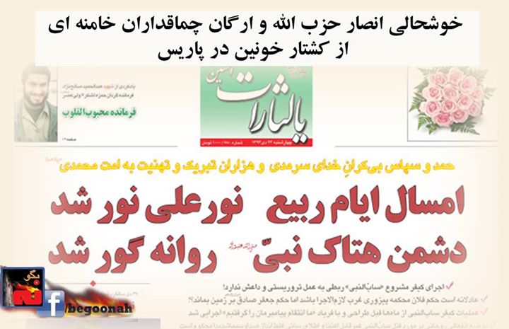 ارگان چماقداران خامنهای «یالثاراتالحسین» در تازهترین شماره خود از ترور چهار کاریکاتوریست وهشت روزنامهنگار نشریه «شارلی ابدو» در پاریس استقبال کرد.