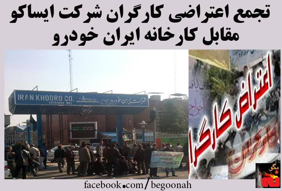 بنا به خبر دریافتی ،صبح روز چهارشنبه اول بهمن ماه، کارگران شرکت ایساکو وابسته به ایران خودرو در اعتراض به پرداخت نشدن ۴ ماه حقوق در مقابل کارخانه ایران خودرو تجمع کردند. آنها فریاد میزدند: ما حقوق میخواهیم.