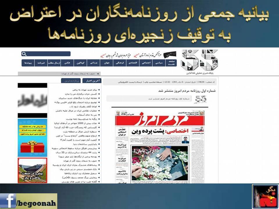 #ايران #سانسور #روزنامه #توقيف #بيانيه #روزنامه نگاران #آزادي #مطبوعات#بگونه