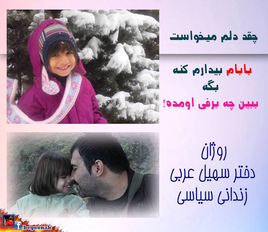 گالری فیلم و تصویر برای آزادی سهیل عربی … نسترن نعیمی در صفحه فیس بوکی خود میگوید: به گفته بچه ها چقد دلم میخواست بابام بیدارم کنه بگه ببین چه برفی اومده! Date: ژانویه 28, 2015Author: begoonah 0 دیدگاه اشتراکگذاری این:بیشتر برای اشتراکگذاشتن فیسبوک خود کلیک کنید (در پنجرۀ تازه باز میشود) فیسبوک اشتراک گذاشتن توسط اس ام اس (در پنجرۀ تازه باز میشود) X برای چاپ کردن کلیک کنید (در پنجرۀ تازه باز میشود) چاپ برای اشتراکگذاری روی Telegram کلیک کنید (در پنجرۀ تازه باز میشود) تلگرام برای اشتراکگذاری روی WhatsApp کلیک کنید (در پنجرۀ تازه باز میشود) واتساپ
