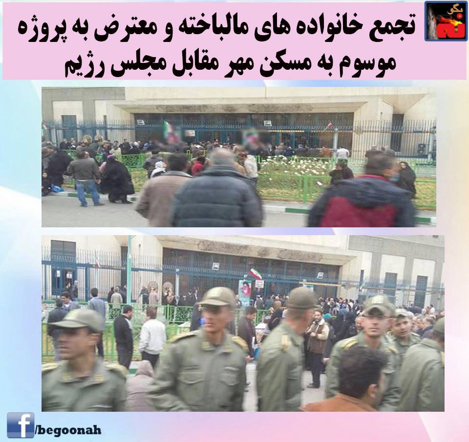 تجمع خانواده های مالباخته و معترض به پروژه موسوم به مسکن مهر مقابل مجلس رژیم