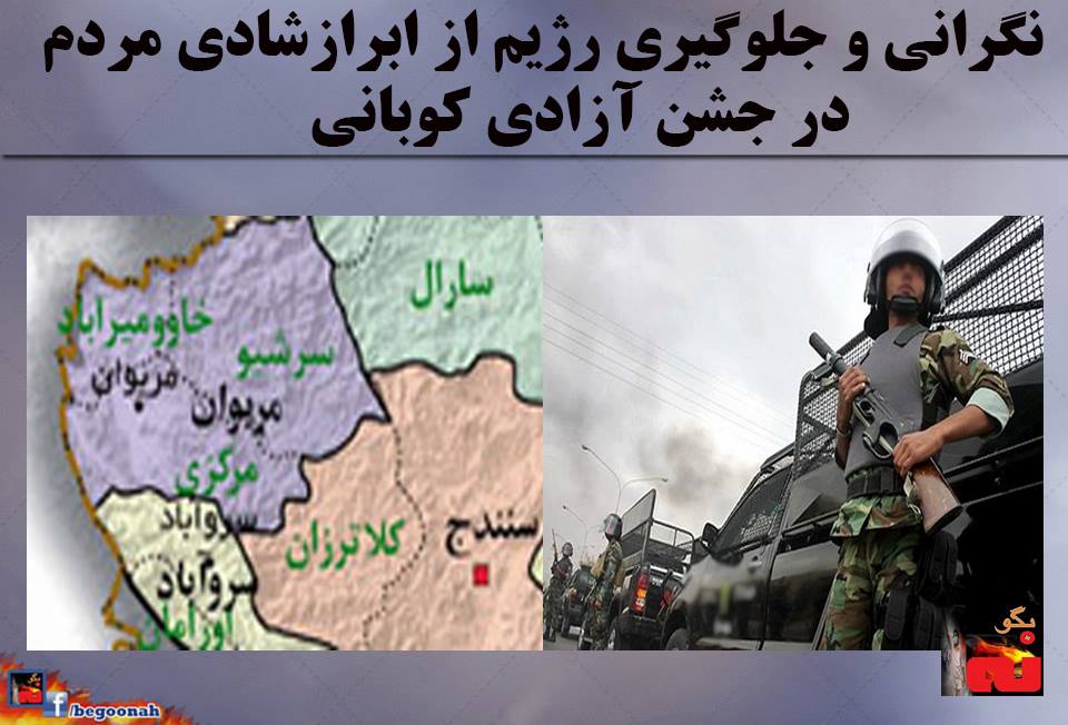 گذشته، نیروهای امنیتی و نظامی رژیم جهت ممانعت از شادی و پایکوبی هموطنان کُرد در مریوان، در سطح این شهر مستقر و رفت و آمد شهروندان را کنترل میکنند. قرار بود تا این هموطنان برای ابراز شادی نسبت به آزادی کوبانی در تفرجگاه زریبار تجمعی برگزار کنند، اما به دلیل فضای امنیتی مریوان و حضور نیروهای امنیتی و نظامی رژیم در این محل، این تجمع نتوانست برگزار شود.