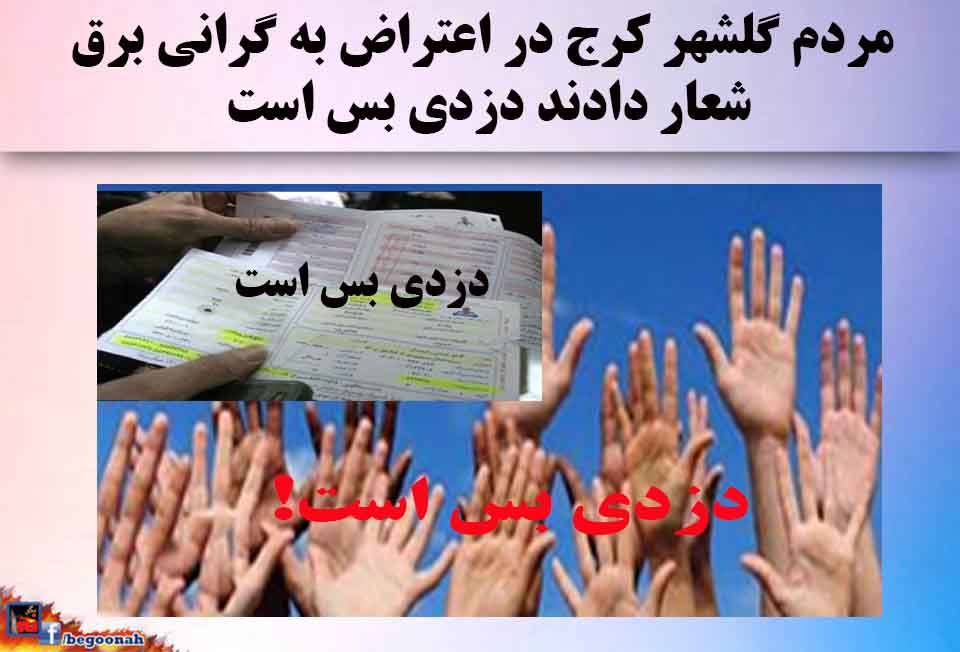 مردم گلشهر کرج در اعتراض به گرانی برق شعار دادند دزدی بس است