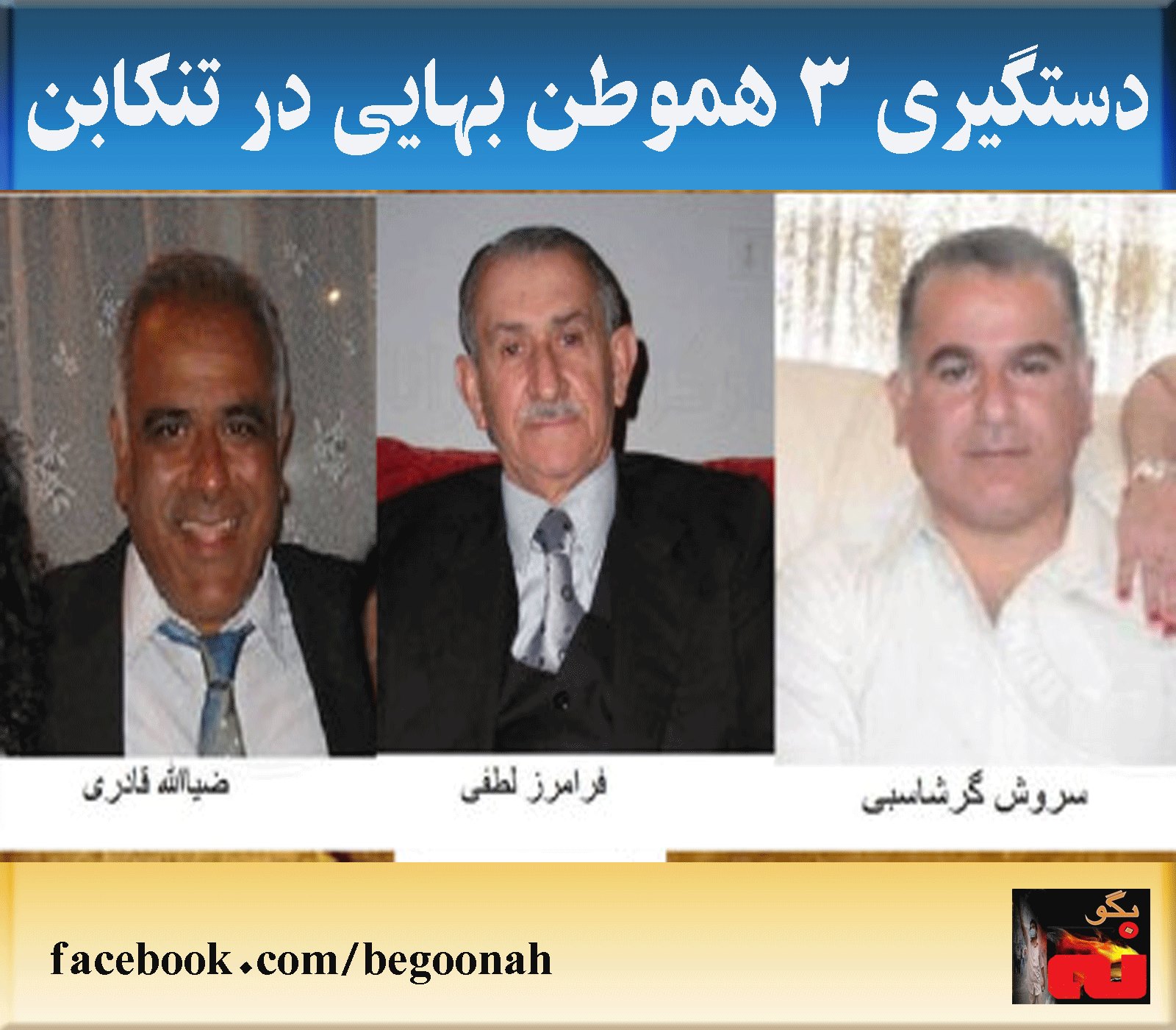 بگونه : به گزارش دریافتی ، روز سهشنبه ۱۴ بهمن ماه ۳ هموطن بهایی به نامهای فرامرز لطفی، ضیاالله قادری و سروش گرشاسبی در تنکابن دستگیر شدند
