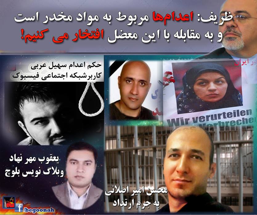 #بگونه: وزیر خارجه رژیم در پاسخ به سوال خبرنگار بی بی سی در باره تعداد فراوان محکومیت به اعدام در ایران با وقاحتی در حد همان امام دجالش گفت: این اعدام ها مربوط به قاچاقچیان مواد مخدر است و ما به مقابله با این معضل افتخار میکنیم.