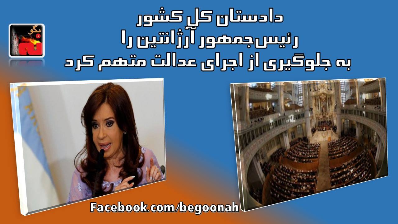 بگونه: به گزارش راديو آلمان,مسئولان قضائی آرژانتین روز جمعه در بوئنوس آیرس اعلام کردند که دادستان کل کشور کریستینا کیرشنر رئیسجمهور آرژانتین را بهطور رسمی به ممانعت از اجرای عدالت در ماجرای پرونده مرکز یهودیان بوئنس آیرس متهم کرده است.