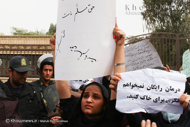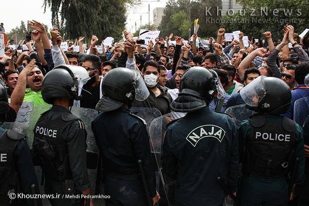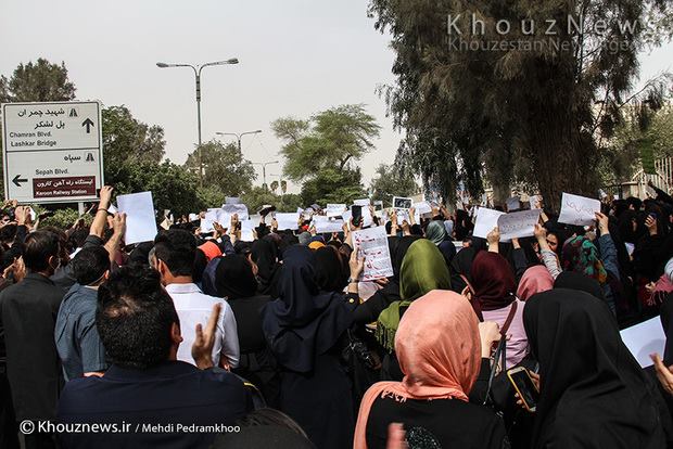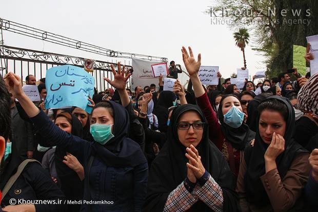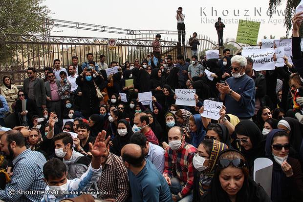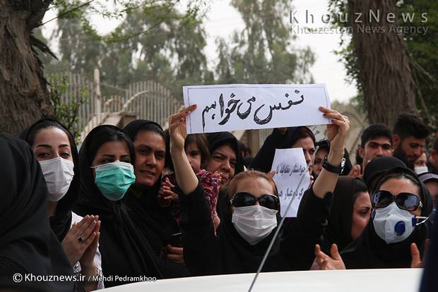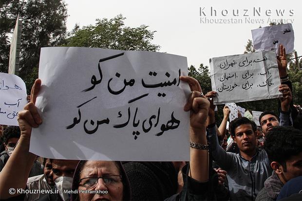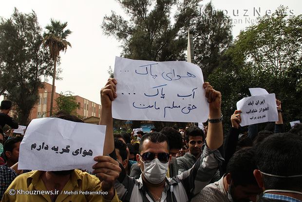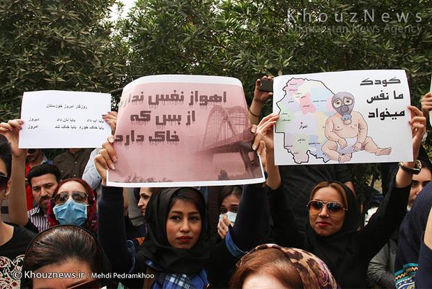 مردم اهواز از ساعت 10 امروز صبح به دلیل اعتراض به عملکرد مسئولین در قبال وضع اسفبار گرد و غبار هفته های اخیر خوزستان، درب استانداری تجمع کردند. لازم به ذکر است عبدالحسن مقتدایی، استاندار رژیم در خوزستان اعلام کرده است: تجمع هايی كه در اعتراض به گردوخاك در روزهاي قبل صورت گرفته و همچنين تجمعي كه امروز مقابل درب استانداري انجام شده، غيرقانوني و بدون مجوز رسمي بوده است.