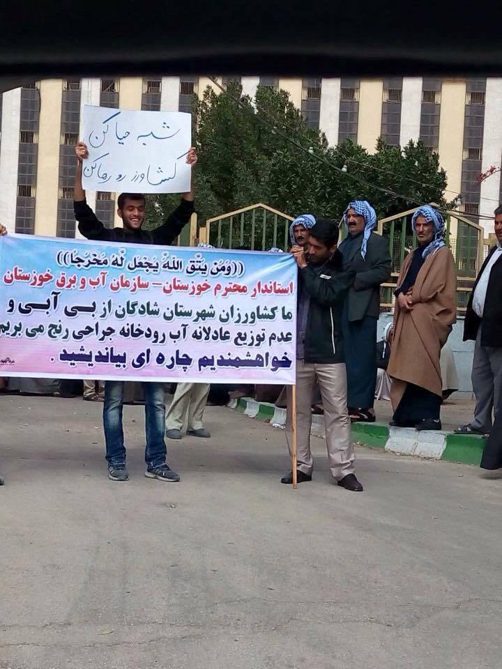 #بگونه:امروز دوشنبه عده اى از كشاورزان محروم منطقه شادگان در مقابل سازمان آب رژیم در اهواز نسبت به كم آبي و خشكاندن رودخانه جراحى توسط ایادی چپاولگر رژیم و بویژه سپاه پاسداران تجمع اعتراضی برقرار کردند.