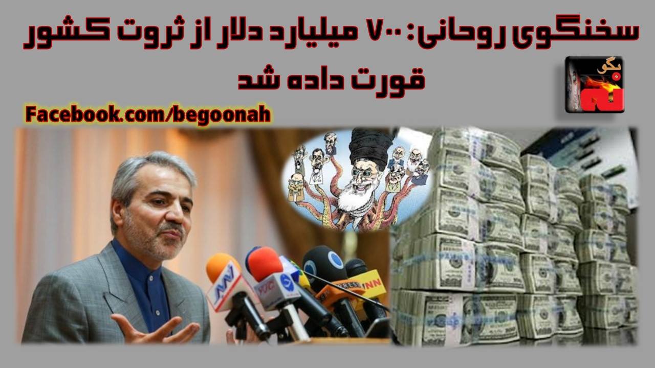 #بگونه: به گزارش خبرگزاری حکومتی ایرنا، محمد باقر نوبخت روز پنج شنبه ۳۰ بهمن گفت: ۷۰۰ میلیارد دلار از ثروت کشور طی پنج تا شش سال «خورده و قورت داده شده است» «من نمیگویم اختلاس شده» ولی میتوانم بگویم که محصول این پول نباید رشد منفی اقتصادی باشد.