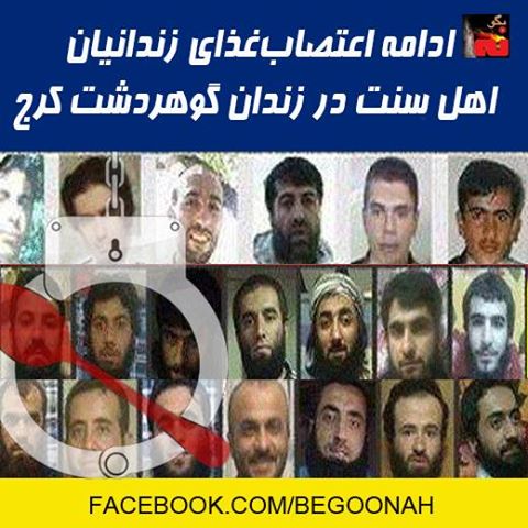 #بگونه: اعتصاب غذای زندانیان اهل سنت در زندان گوهردشت کرج که از روز سهشنبه 12اسفند در اعتراض به حمله وحشیانه و ضرب و شتم گارد زندان و بردن شش زندانی سیاسی کرد برای اعدام آغاز شده بود، همچنان ادامه دارد. مشکلات صنفی یکی دیگر از موضوعاتی است که زندانیان در اعتراض به کمبود حداقلهای صنفی، دست به اعتصابغذا زدهاند.