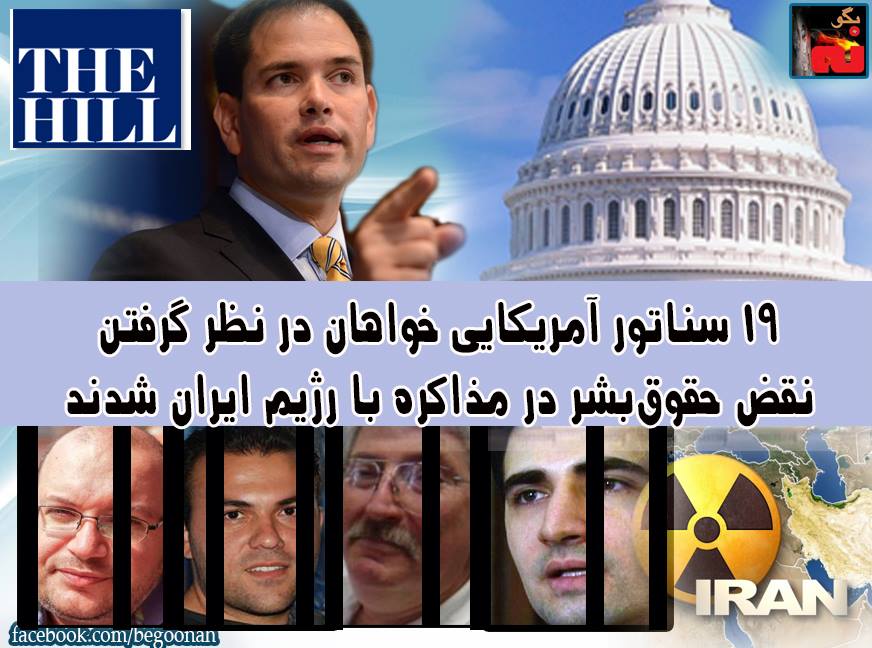 #بگونه: 19 سناتور جمهوریخواه آمریکا با ارسال نامهیی به جان کری وزیر خارجه آمریکا اعلام کردند: عدم پرداختن به موضوع نقض حقوقبشر در ایران، در مذاکرات هستهیی با رژیم ایران غیرقابل قبول است.